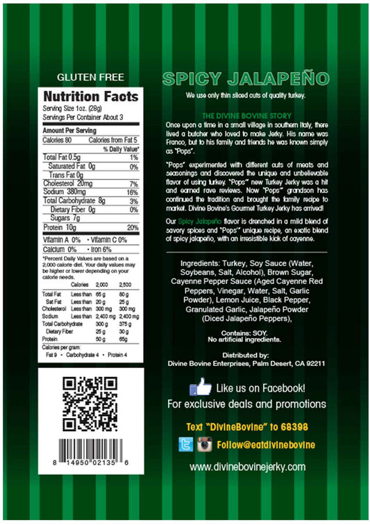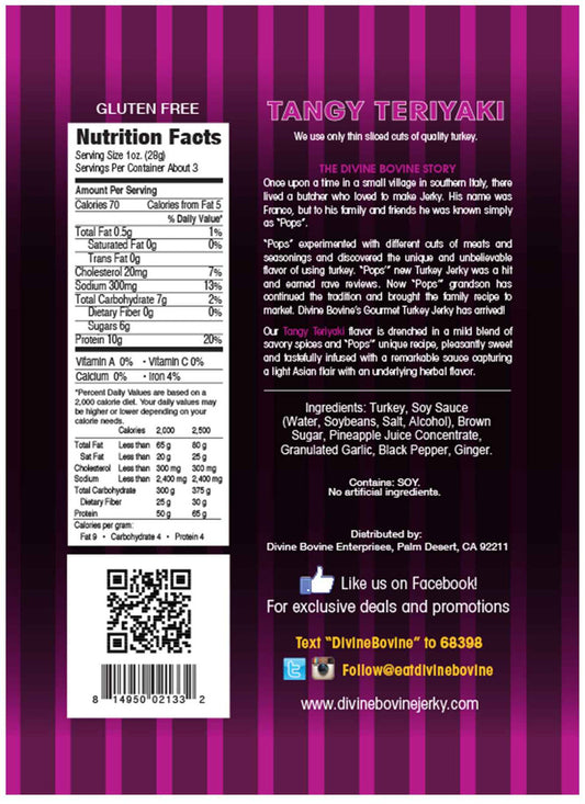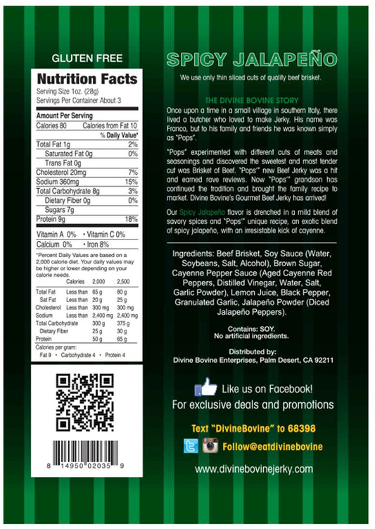 Now, Pops' grandson carries the torch, staying true to the original recipe. Divine Bovine's Beef Jerky is handcrafted in small batches with Wisconsin steer brisket, dry-aged for 30 days, and then marinated for 24 hours in their standout sauces to lock in the flavor. Finally, it is cooked to perfection in a state-of-the-art oven. New additions to the lineup include bacon and turkey jerky.